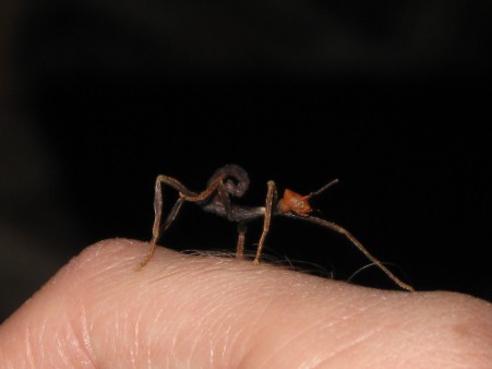 Čerstvě vylíhlé nymfy přemisťuji do 3l zavařovacích sklenic, ve kterých tráví první týdny života až do svlékání. Nymfy v prvním instaru mají ochranný vzhled mravenců rodu Leptomyrmex. Dovedly to k takové dokonalosti, že se dokonce pohybují s mravenčí hbitostí, což ovšem značně stěžuje manipulaci. Malé strašilky jsou velmi křehké, proto je nejlepší nechat je při přendávání raději přelézt např. na klacík, tužku či jiný předmět. Nymfičky je možné opatrně brát i mezi prsty, ale chce to velkou dávku něhy a ne každý je schopný vynaložit dostatečnou "dávku jemnosti", proto tento způsob manipulace nedoporučuji.